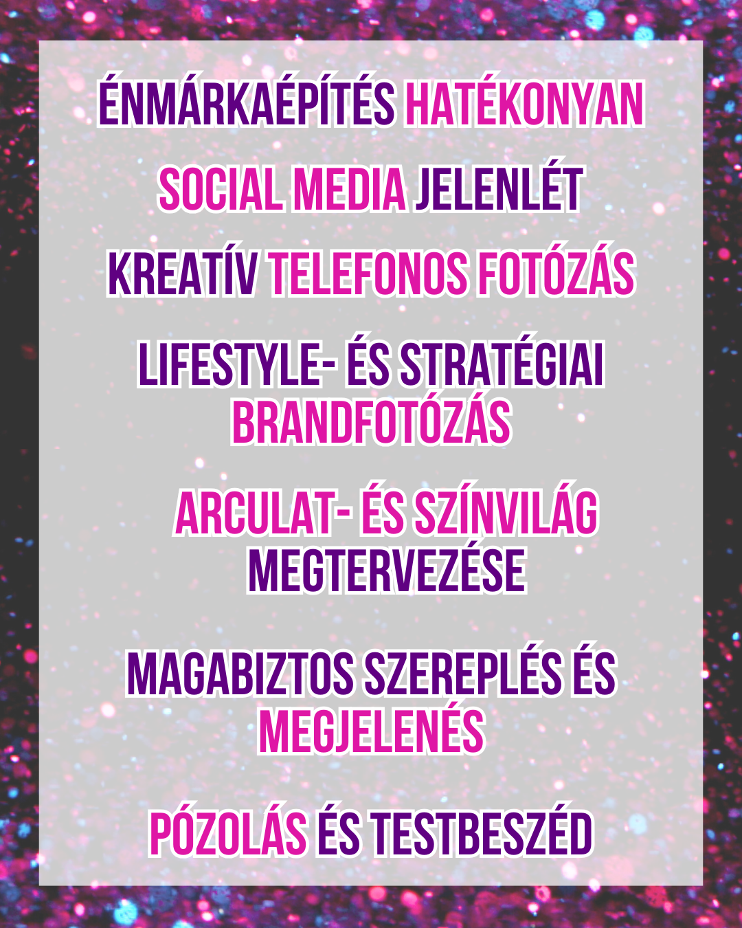 Ebben a mentorprogramban közösen dolgozunk azon, hogy összeálljon az értékrended, a kommunikációd, a célközönséged, és az a vizuális világ, ami valóban téged képvisel: színekben, stílusban, megjelenésben, arculatban, képi világban. Megtanulsz profin pózolni és görgetésmegállító fotókat készíteni a saját telefonoddal.